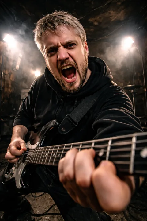 Мощная игра на электрогитаре