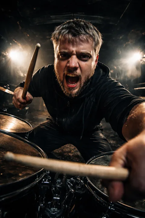 Мощная игра на барабанной установке