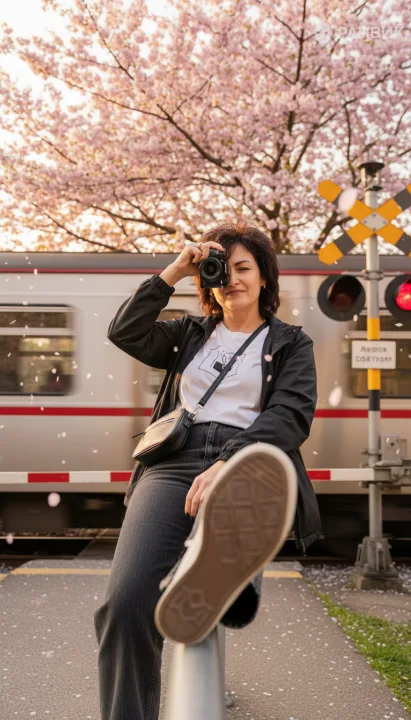 Фото фотографа на железнодорожном переезде