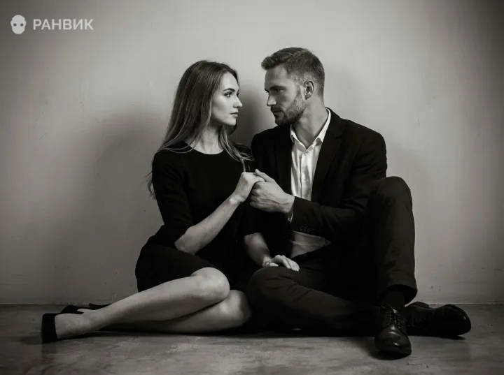 Промпт для черно-белого фото парня с девушкой раскрывает напряженную, но бережную близость: они сидят на полу, держатся за руки и встречаются серьезными взглядами. Минималистичный фон с мягкой текстурой стены не отвлекает, а усиливает драматургию и делает эмоции главным сюжетом.