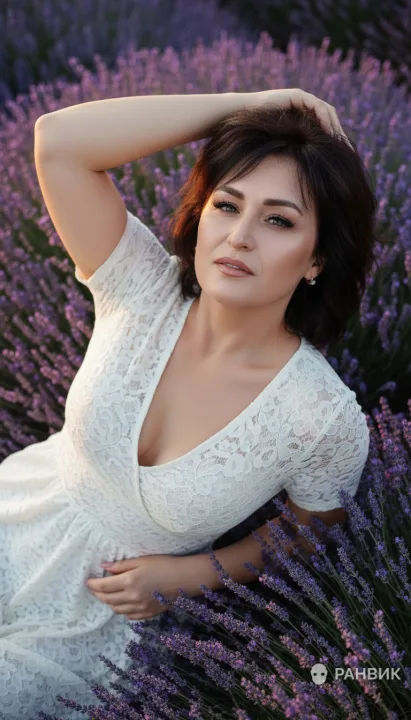 Портретная сцена, где нежность кружева встречается с насыщенными фиолетовыми тонами и атмосферой закатного света. В основе — продуманный промпт с вертикальным кадром 9:16, ракурсом сверху под углом и выразительным акцентом на взгляде.