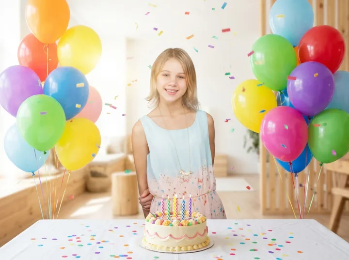 Фото ко дню рождения девочки помогает сохранить живую эмоцию праздника: улыбка в кадре, шарики с гелием и торт со свечами создают историю, к которой приятно возвращаться годами.