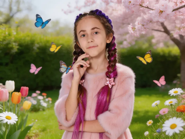 Возьмите промпт с упором на естественный свет и резкость, добавьте бабочек как динамичный элемент и оставьте простор в кадре для воздуха. Если нужен стабильный результат, уточняйте в промпт платье, сезонный сад и насыщенность цветов.