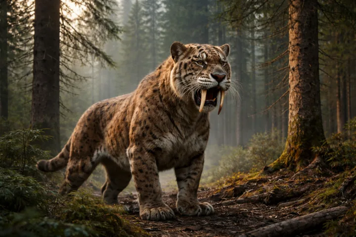 Подобный подход к визуализации вымерших животных открывает широкие возможности для образовательных проектов, документалистики и музейных экспозиций. В отличие от схематичных рисунков или стилизованных образов из кино, фотореалистичная генерация позволяет рассмотреть предполагаемый облик доисторического хищника в естественной среде обитания с документальной точностью. Это делает изображение не просто красивой картинкой, а полноценным учебным или научно-популярным материалом, который можно использовать в лекциях, книгах или интерактивных приложениях.