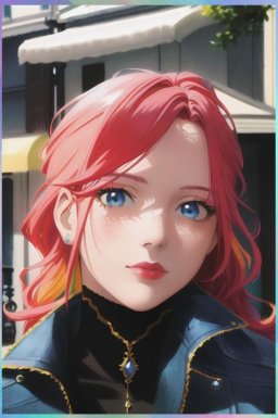 Используйте промпт с четкими акцентами на позе, фактурах ткани и металла, а также на цветовой паре: фиолетовый и светло-зеленый. Дополните предметом-символом в переднем плане, чтобы кадр сразу читался и дольше удерживал внимание.