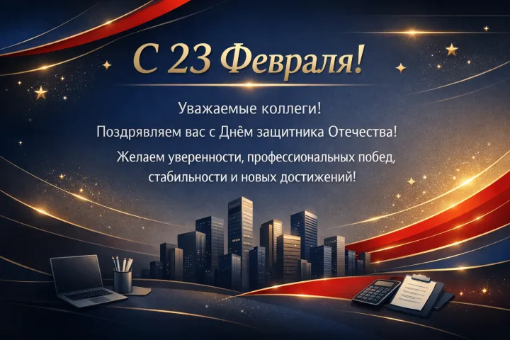 Поздравительная открытка ко Дню Защитника Отечества коллегам по работе помогает поздравить команду уважительно и без лишней патетики. Подходит для рассылки, общего чата и публикации на внутреннем портале: деловой тон, торжественное настроение, акцент на профессиональных победах и стабильности.