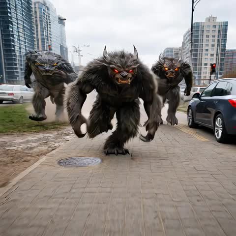 Видео монстры бегут и кричат по городу - динамичная сцена паники и силы, где городские улицы становятся ареной погони. В основе лежит промпт с акцентом на постоянную смену кадров: действие не замирает ни на секунду, создавая плотный ритм и ощущение присутствия.