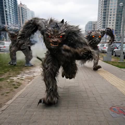 Видео нападения монстров и Годзиллы раскрывает напряженную историю: чудовища вступают в бой с военными, и поначалу перевес оказывается на стороне людей, но затем появляется Годзилла и превращает схватку в общую катастрофу. Такой сюжет держит темп и дает ясную драматургию конфликта.