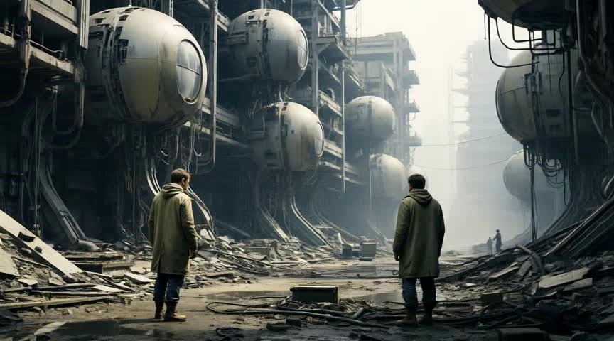 Видео технологического общества в упадке раскрывает альтернативную реальность, где архаичная техно цивилизация держится на странных реликтах прогресса и точной инженерии. В кадре важна фактура времени: следы износа, сложные формы и ощущение системы, которая еще работает, но уже на пределе.