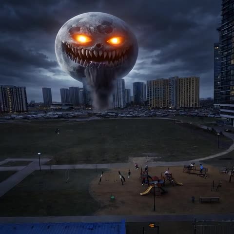 Видео злая луна нападает на детскую площадку раскрывает напряженную историю, где ночное небо превращается в источник угрозы. В основе лежит промпт с задачей придумать случайный сценарий: непредсказуемость событий становится главным приемом и держит внимание до финала.